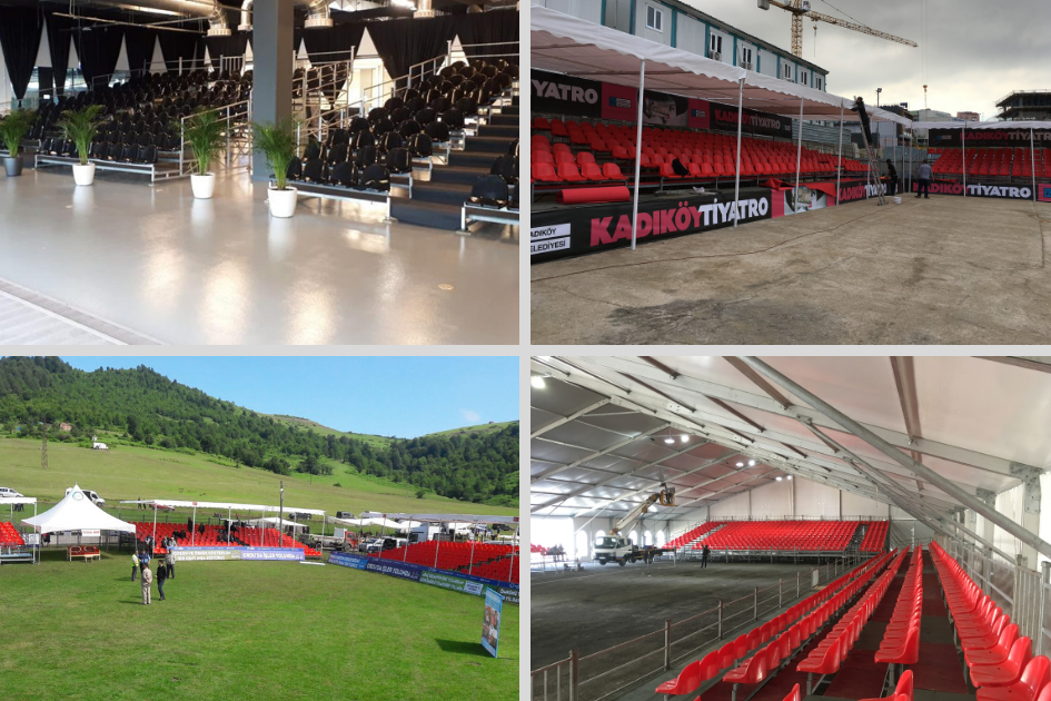 Daha önceki yıllarda olduğu gibi 2018 yılı boyunca da aralarında birçok il ve ilçe belediyelerin ve kurumsal şirketlerin bulunduğu müşterilerimiz, yapmış oldukları açık hava ve kapalı alan organizasyonlarda misafirlerini ağırlamaları için kiralık tribün hizmetimizden yararlandı.